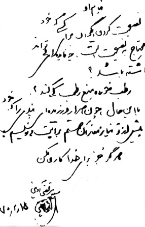 آقاجان؟ می شنوید چه می گویم؟ اگر بگویم غلط کردم راضی می شوید؟ بگویم شکر خوردم چه؟ درست است که من پشیزی نمی ارزم. درست است که من لیاقت ندارم. این ها را می دانم. اما شما که لیاقت بخشیدن دارید. شما که لیاقت دستگیری دارید. شما که خوبید. شما که آقایید. ندارید؟ نیستید؟